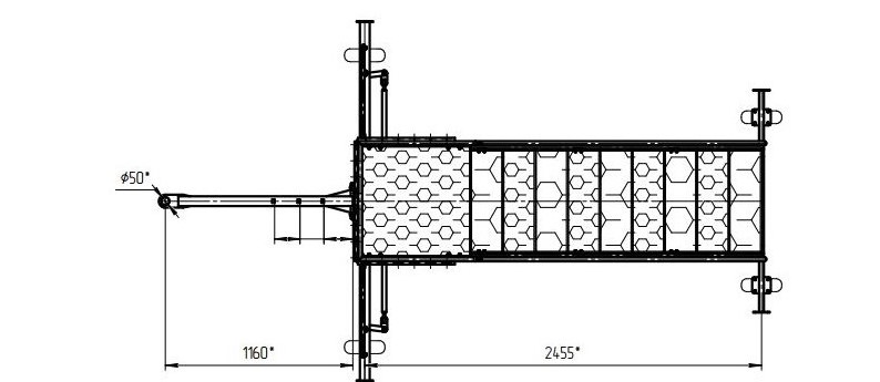 Изделие состоит из рамы – основания, верхней рабочей площадки и нижней вилки – упора. На нижней платформе установлены аутригеры для компенсации неровностей поверхности при установке стремянки СА - II в рабочее положение.
