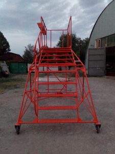 Стремянка представляет собой модульную конструкцию. Состоит из основания, неподвижной лестницы и рабочей площадки без дополнительных механизмов подъема и гидравлических приводов.